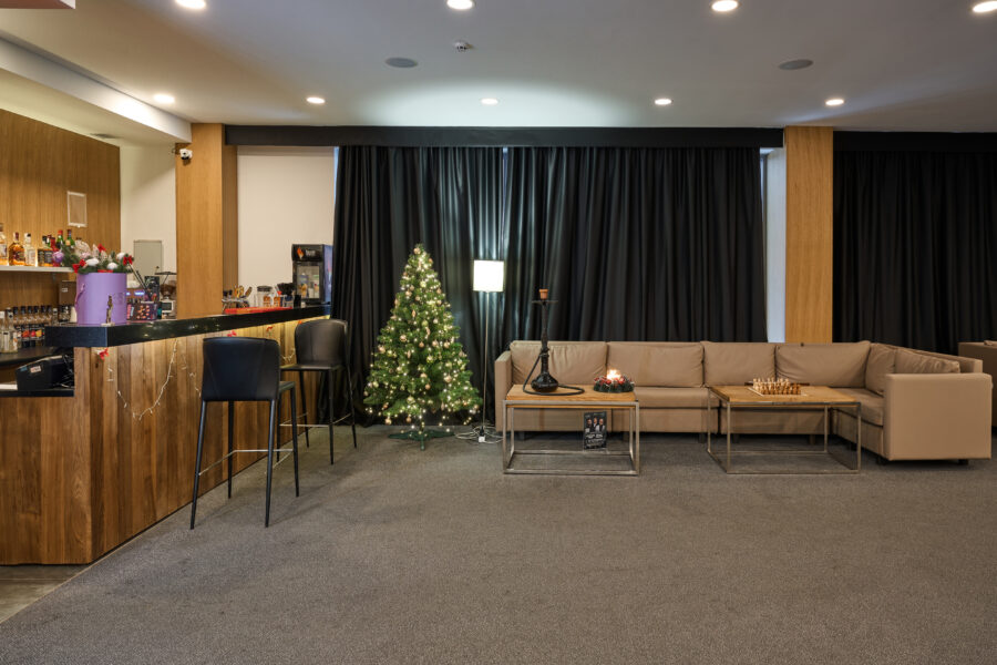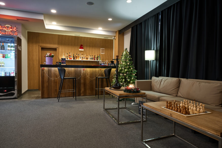 Розслабтесь та насолоджуйтесь переглядом улюблених фільмів чи спортивних трансляцій у нашій комфортній лаунж-зоні. Зручні місця для відпочинку, якісне зображення та приємна атмосфера — ідеальний спосіб провести вечір після насиченого дня.